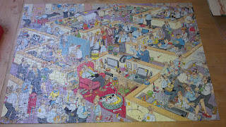 Alla inklusive jag själv blev nog väldigt förvånade när jag la det här pusslet i princip alldeles på egen hand! Oliver hjälpte mig med sista biten som gömt sig under soffan, en ficklampa är bra att ha! "nu kanske du får blodad tand att fortsätta lägga mer på de pussel vi lägger" sa Stefan. Eller så blir det helt tvärtom, nu har jag gjort min del, nu kan jag luta mig tillbaka och titta på. :)